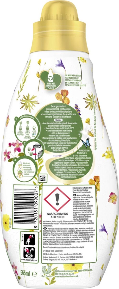Robijn Klein & Krachtig Wit Floral Morning Vloeibaar Wasmiddel – 8 X 19 Wasbeurten – Voordeelverpakking